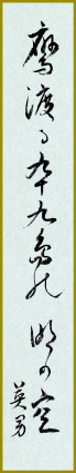 平成22年10月号「春嶺」に発表された句である。 作者はその前年9月、春嶺の同士5人と長崎県北部を吟行された。 平戸市の隠れ切支丹の民家や教会・遺跡を巡り、翌日は佐世保市へ移動。奇岩怪石に富む島々の九十九島を遊覧の後、夜は九十九島を眼下に望むホテルに宿泊された。 翌朝すっかり晴れ渡った九十九島の空を、南西へ向かって渡って行く鷹を詠まれたものである。 九十九島の近くに、標高568メートルの烏帽子岳が聳えている。 そこは毎年9月になると、朝鮮半島や中国等から対馬・壱岐を経てフィリピン以南へと渡る鷹の休息地となっている。 そこで一夜を過ごした鷹が、九十九島の空を飛んで行く。作者は運良く早朝飛び立った鷹が頭上を舞い、そして滑るように飛ぶ勇姿と巡り合ったのだった。(縣 恒則) 鷹渡る九十九島の明けの空