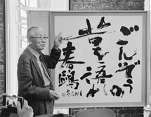 ・当日旧古河鉱業若松ビルで、毎日書道展審査会員でもある書家山本飛雲先生主宰の雲心書道会による「書と俳句の世界ー岸原清行の句を書く」の書作展が開催中で、20人の書家による主宰玉句の書展とともに、岸原主宰のスペシャルトークがありました。